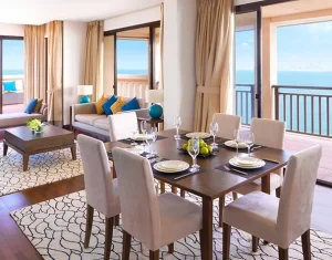Anantara The Palm Dubai Resort offers a diverse dining experience with world-class restaurants. Guests can savour a range of international cuisines, from Thai and Asian fusion to Mediterranean and beachside grills, all set in stunning beachfront and lagoon-side locations.