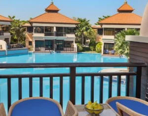 Anantara The Palm Dubai Resort is an exclusive beachfront retreat on Palm Jumeirah, blending contemporary Arabian style with Thai-inspired luxury. The resort boasts spacious overwater villas, tranquil lagoon pools, and a pristine private beach. With a variety of gourmet dining experiences and panoramic Arabian Gulf views, it’s the perfect destination for relaxation and unforgettable getaways.