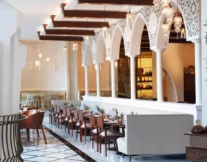 The iconic Atlantis, the Palm is a destination in and of itself. The hotel proudly stands at the tip of the Pal Island. Reimagined after the legend of Atlantis, the hotel features underwater-themed bedrooms, an indoor aquarium with over 65,000 marine animals, and a sensational water park with endless thrills and spills for guests of all ages. Other notable amenities include numerous restaurants, including one with a Michelin star, a bowling alley, and a private beach. A stroll through the endless gardens will reveal exciting playgrounds, cascading waterfalls, and a scenic jogging track for those eager to explore.