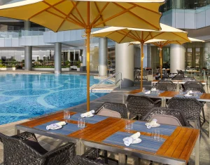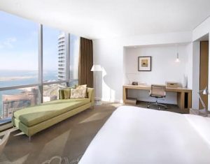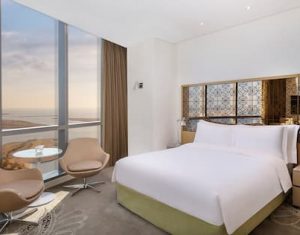 It’s no surprise that the restaurants here have spectacular views. Ray’s Bar on level 62 serves innovative cocktails while playing incredible music. Explore Rosewater’s award-winning buffet, which promises to transport you around the world with its tantalizing global flavours. You can even watch the chefs cook at their live cooking stations, which is a culinary highlight. Poolside restaurant Nahaam will serve sandwiches, burgers, and other classic favourites for a casual yet chic dining experience. Some suite reservations even include complimentary happy hour drinks. Other suite bookings include access to Level 42, which serves delicious food, afternoon teas, aperitivo, and sundowners throughout the day. Beautiful ocean views will follow you wherever you go thanks to the tower’s height.