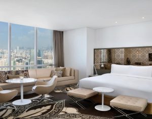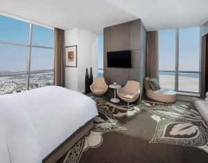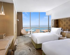 Conrad Hotel Abu Dhabi Etihad Towers, which towers over both the city and the Arabian Gulf, guarantees spectacular views. Those who appreciate modern design will appreciate the fully integrated lifestyle technology and unrivalled style in each of the 377 rooms and suites – it’s exactly what you’d expect from an Abu Dhabi luxury resort. An impressive observation deck on the 74th floor provides an unforgettable experience, and the spa is an excellent place to relax and forget about your worries. Versatility is essential in this situation. This is a resort designed for work, pleasure, and celebrations, with 12 award-winning restaurants and bars, one of Abu Dhabi’s largest event facilities, and spacious apartments.