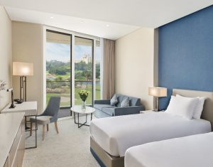 JA Lake View Hotel, the newest addition to JA The Resort in Dubai, is now open! The luxury resort which overlooks the 9-hole championship golf course consist of 348 guestrooms and suites with balconies, three swimming pools, and five new dining experiences. Guests have full access to the private beach and all JA The Resort activities including JA Equestrian Centre, Calm Spa & Salon, JA Marina, and more.