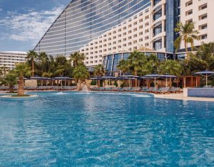 Jumeirah Beach Hotel offers a variety of luxurious accommodations designed to cater to both families and couples. The hotel features spacious rooms, suites, and villas, each boasting modern amenities and floor-to-ceiling windows with stunning views of the Arabian Gulf or Dubai’s iconic skyline. The interiors are elegant and contemporary, providing comfort with a touch of sophistication. With direct beach access, private balconies, and personalized services, the accommodations at Jumeirah Beach Hotel are tailored to provide a memorable stay in an exclusive setting.