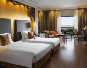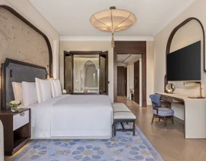 A truly luxurious beachside resort located on the west crescent of the iconic Palm Jumeirah in Dubai, Jumeirah Zabeel Saray offers exhilarating views of the Arabian Gulf and Dubai’s impressive skyline. The lavish interior of this resort is inspired by Palaces of the Ottoman period and features hand painted finishing, Turkish artworks and stunning murals that conjure up images of the grand and magnificent era of the Ottoman Empire. Jumeirah Zabeel Saray is just a 45-minute drive from Dubai’s International Airport.