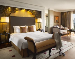 There are a choice of 379 rooms, 26 l suites and 38 Royal Residences. Each and every one are decorated breathtakingly in the Turkish style with Arabic influences. All come with beautifully appointed Turkish-style marble bathrooms with separate walk-in showers and luxurious amenities as standard. Guests benefit from mesmerising views of the Arabian Gulf and Palm Jumeirah and complimentary access to the Wild Wadi Waterpark.