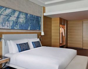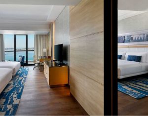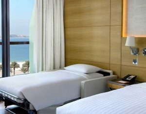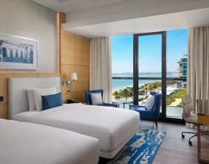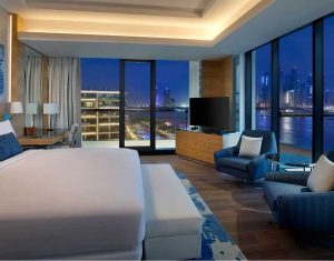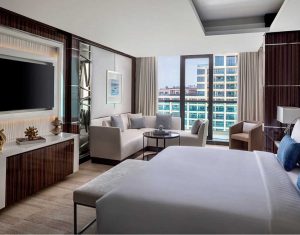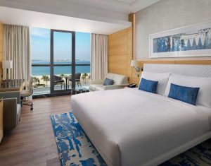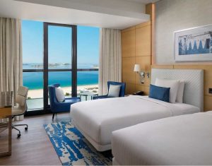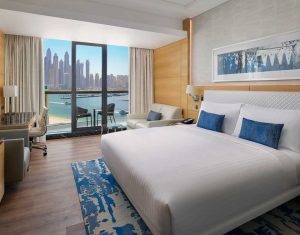 The Marriott Resort Palm Jumeirah in Dubai offers luxurious accommodations featuring elegantly designed rooms and suites with modern amenities. Each room provides stunning views of the Arabian Gulf or the iconic Palm Jumeirah, with plush bedding, spacious bathrooms, and private balconies, ensuring a comfortable and relaxing stay.