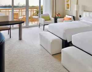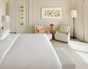 Discover a style of architecture unlike any other, with Moorish and Mediterranean elements. All 223 rooms, including 34 suites, promise spacious interiors and breathtaking views of the Dubai Creek Marina, pristine beaches, and urban skylines. The best part is, you’re never far from glistening waves because some suites feature direct beach access. Before retiring to your plush bedding, enjoy a nightcap on your private balcony or outdoor terrace while taking in the final sights. Then, start the day with complimentary breakfast buffets in the morning when reserving particular suites. Bliss.