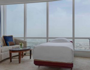 The St. Regis Abu Dhabi presents lavish accommodations that seamlessly blend Arabian elegance with modern sophistication. Guests are treated to breathtaking views of the Arabian Gulf or the vibrant city skyline, with each room and suite adorned in rich fabrics and refined décor. Marble-clad bathrooms, spacious living areas, and the signature St. Regis Butler Service ensures every need is met, providing an experience of unparalleled comfort and luxury.