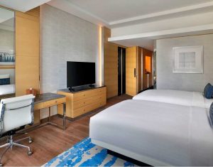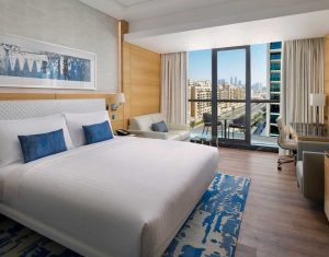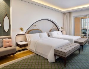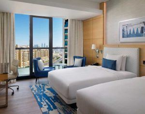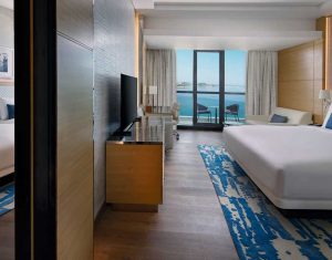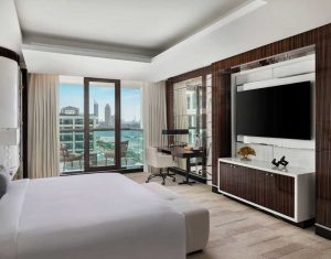 The Westin Dubai Mina Seyahi Beach Resort & Marina offers luxurious accommodations with elegantly appointed rooms and suites, featuring contemporary decor and plush furnishings. Each room includes modern amenities, spacious layouts, and private balconies with stunning views of the Arabian Gulf or the resort’s lush gardens, ensuring a relaxing and comfortable stay.
