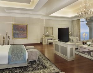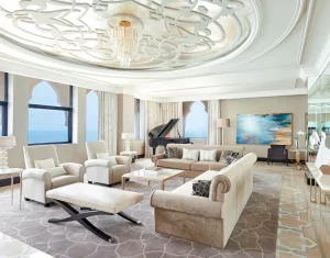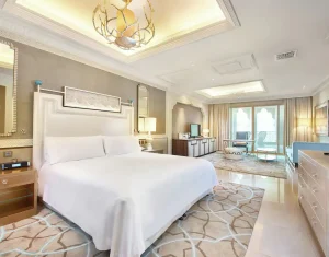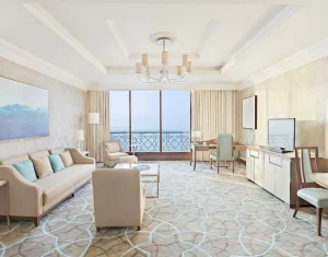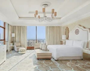 Waldorf Astoria Ras Al Khaimah offers an exquisite collection of rooms and suites, blending Arabian elegance with modern sophistication. Each spacious retreat features high ceilings, plush furnishings, and floor-to-ceiling windows that frame breathtaking views of the Arabian Gulf, Hajar Mountains, or lush golf course. Opulent marble bathrooms, deep soaking tubs, and premium amenities ensure ultimate relaxation, while state-of-the-art entertainment systems provide a seamless stay. Whether in a grand guest room or an extravagant suite with a private terrace, guests are enveloped in comfort and timeless luxury.